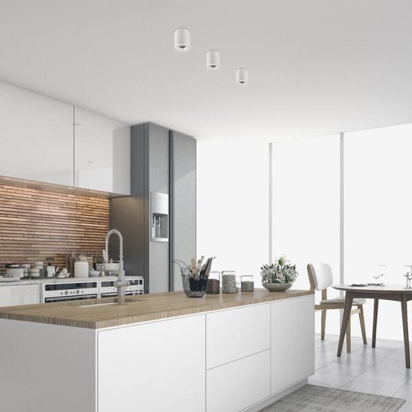 Acest model, care luminează în jos, poate fi folosit cu o singură sursă de lumină cu o putere de până la 25 W, soclu GU10. În funcție de necesitățile dvs., puteți alege un bec cu lumină albă caldă sau naturală, care va crea un efect modern și curat în încăpere. Este ideal pentru zonele de muncă, deoarece ajută la menținerea concentrării. Diametrul plafonierei este de 80 mm, iar distanța față de tavan este de 100 mm. Lampa Kobald se livrează fără sursă de lumină. Sursă de lumină recomandată Bec SMD-Led 6W.